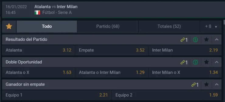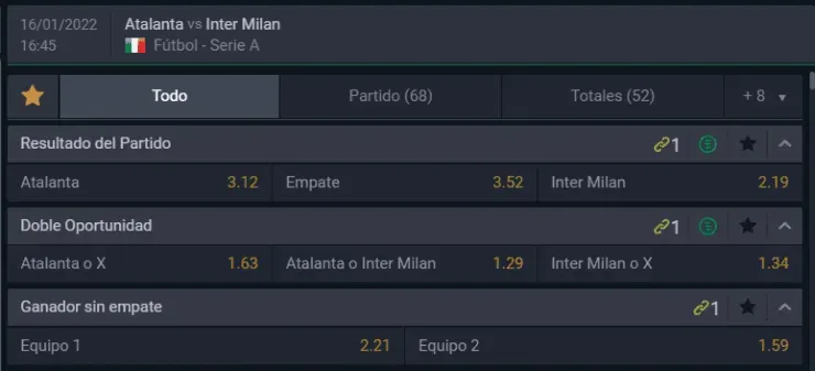 El favorito para Betsala de cara a este partido de la Serie A italiana es Inter de Milán, que paga 2,19 veces lo que juegues, por sobre los 3,12 que paga Atalanta, si piensas que los locales ganan el compromiso. Ahora, el empate entre ambos paga 3,52 veces lo que apuestes.