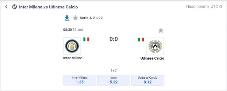 Para CyberBET, el gran favorito para ganar en este partido de la Serie A italiana es Inter de Milán, que paga 1,35 veces lo que apuestes, por sobre los 8,12 que paga Udinese, si crees que vencerán este domingo. Ahora, el empate paga 5,32 veces lo que apuestes.