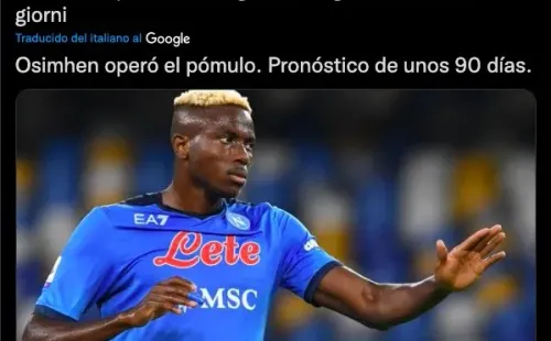 Osimhen estaba en ungran nivel dentro de la Serie A, con nueve goles y dos asistencias en 14 partidos. Pero, habrá que tener paciencia para volver a verlo en acción, ya queevaluarán su grave situación. “El ojo salió de su órbita, hay que ir con pies de plomo”, concluyó Tartaro.