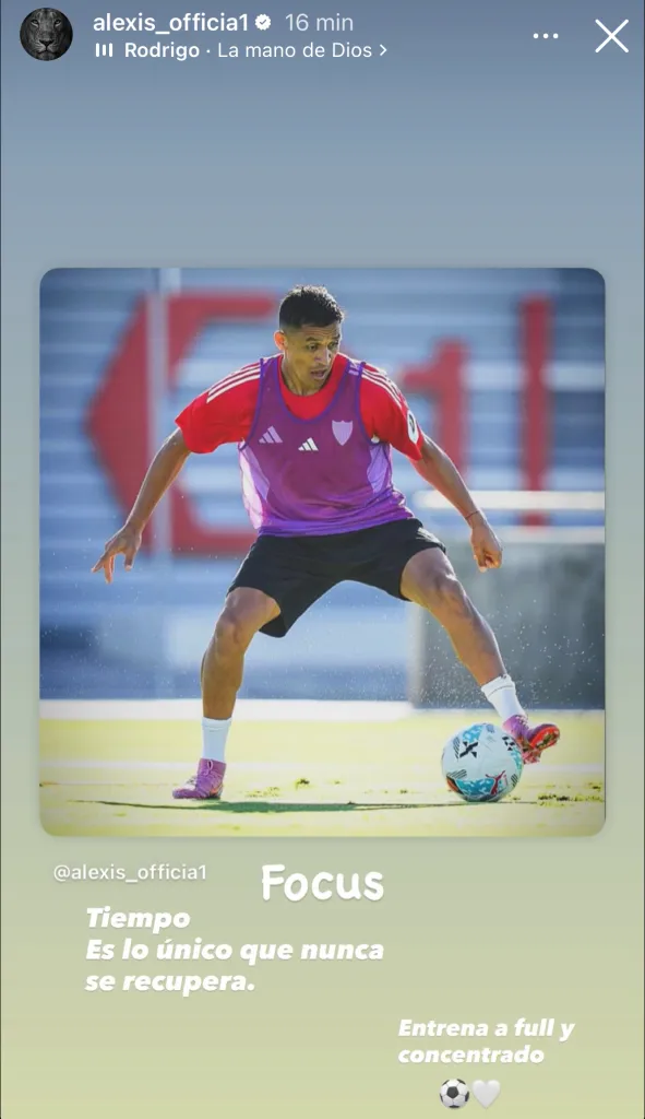 Fue en las historias de Instagram de Alexis Sánchez donde decidió publicar una fotografía de sus entrenamientos con el Sevilla, donde también quiso entregar una señal.