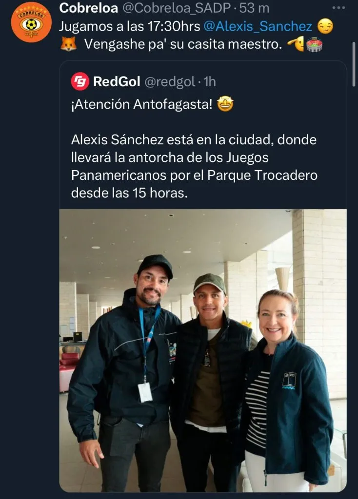 Tras un posteo en Twitter de Redgol, donde se confirmó la presencia de Alexis en al fiesta en la ciudad, que los loínos aprovecharon de hacer una invitación.