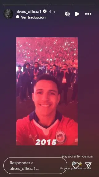 Mediante su cuenta de Instagram, el chileno publicó un emotivo video con parte de la celebración de la selección chilena campeona de Copa América 2015. Y ahí, la frase dedicatoria “yo juego para vos mamá”.