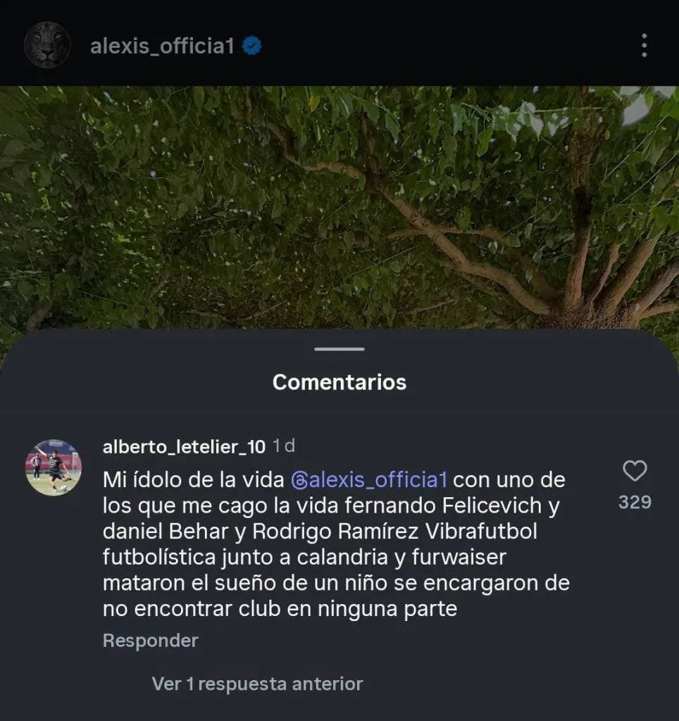 Alberto Letelier, ex seleccionado nacional que se retiró a los 21 años acusando que lo borraron del fútbol chileno Fernando Felicevich y compañía, le dio con todo a Alexis Sánchez por su foto con el argentino.