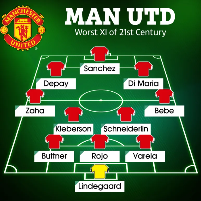 La formación de los peores fichajes del Manchester United en el siglo XXI