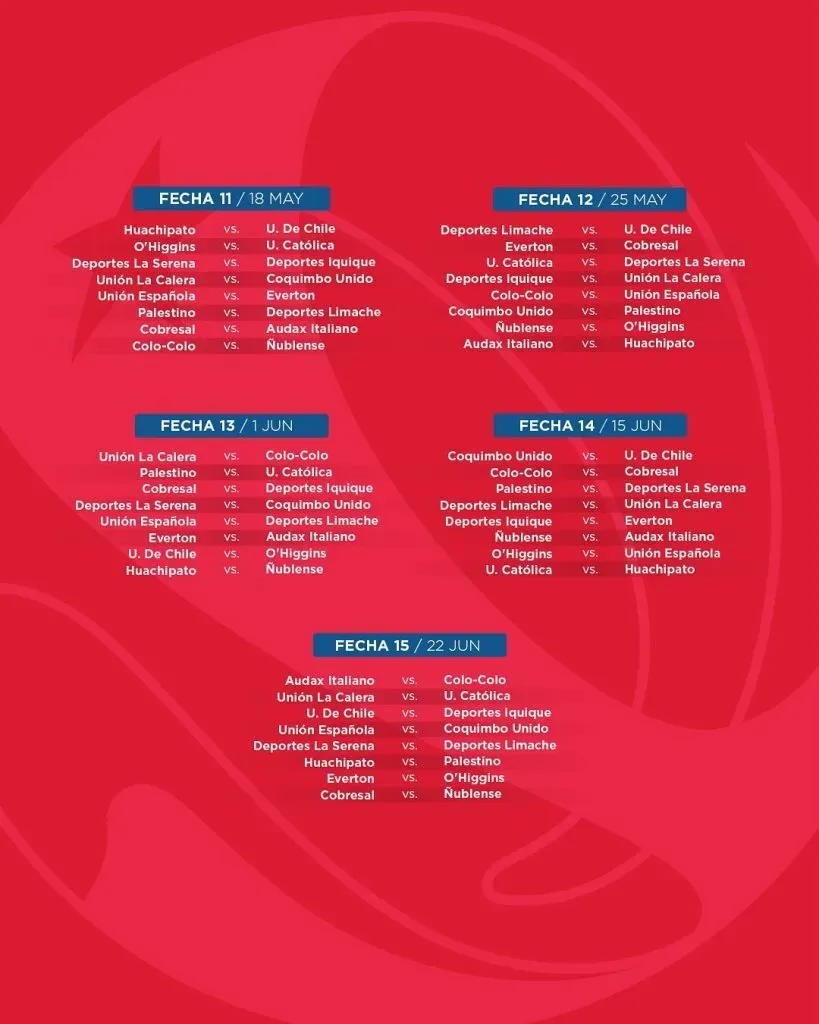 Por su parte, el Clásico Universitario se llevará a cabo en la décima fecha, para el fin de semana del 4 de mayo, donde los azules serán locales en el Coliseo de Ñuñoa.