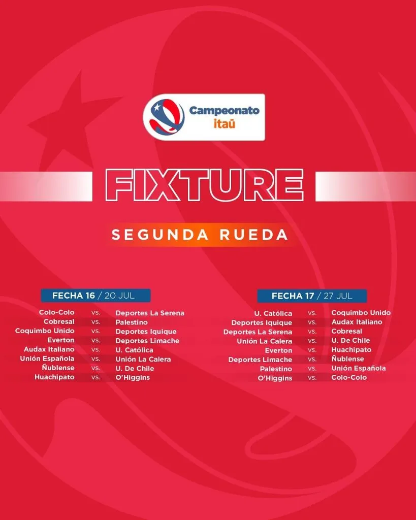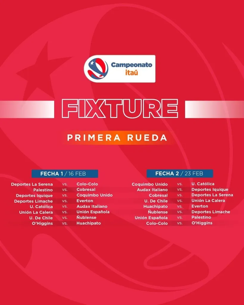 A través de su sitio web oficial, el ente rector del balompié nacional entregó la calendarización del torneo local, el cual deberá arrancar el fin de semana del 16 de febrero con el tradicional “Duelo de Campeones” entre Deportes La Serena y Colo Colo en el Estadio La Portada.