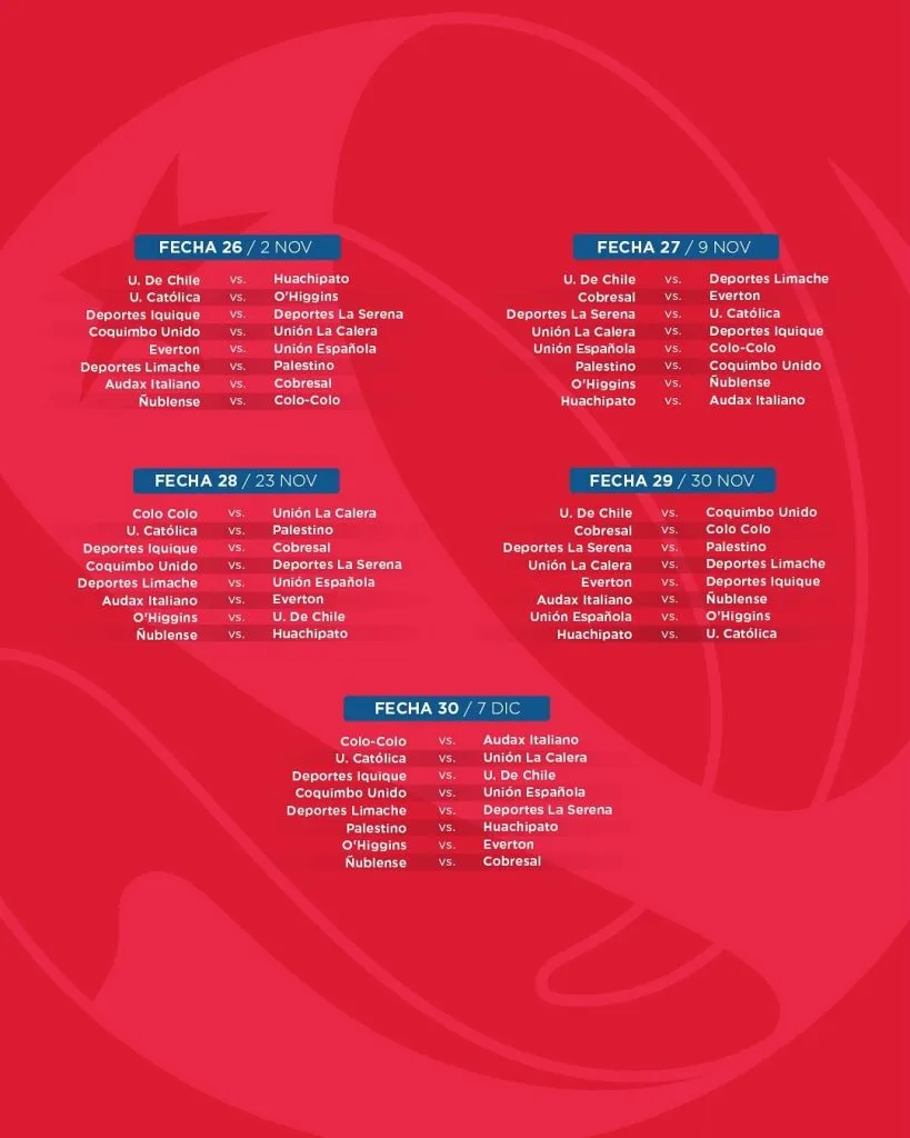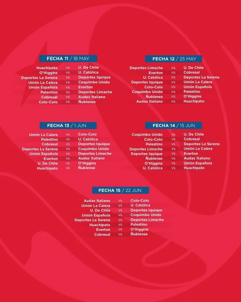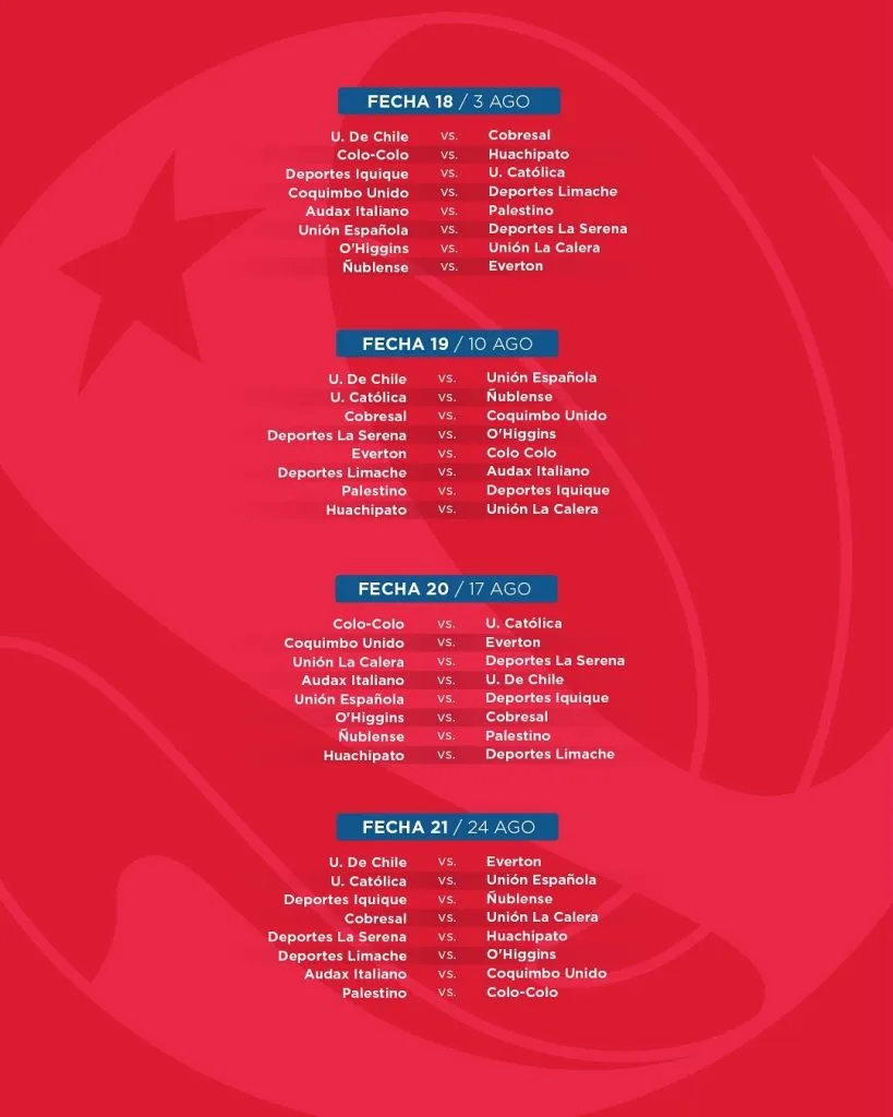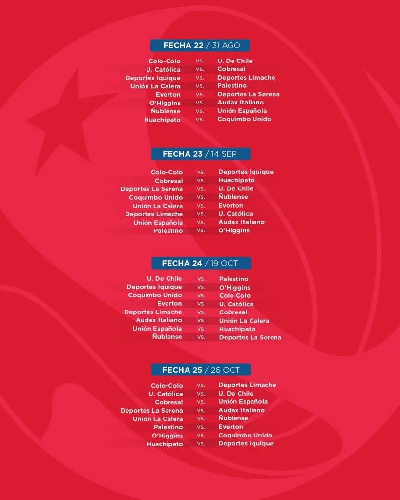 Pero lo más importante para los hinchas, más allá de que el Campeonato Nacional 2025 finalizará el fin de semana del 7 de diciembre, con recesos en abril, mayo, junio, julio, septiembre y octubre, es saber cuándo es que se jugarán los Clásicos, que esta temporada vendrán por montones.