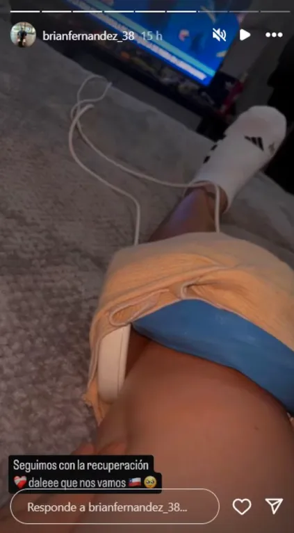 Con un video de 15 segundos, donde muestra parte de su tratamiento médico, el atacante escribió “seguimos con la recuperación. Dale que nos vamos“, con la bandera nacional y un emoji que grafica su emoción por este nuevo paso.