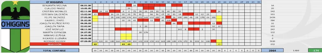 A falta de que seis equipos se pongan al día con el calendario, con 23 jornadas en los libros de historia, el primero de los equipos que superó este registro fue O’Higgins de Rancagua, gracias a nombres como el lateral Felipe Faúndez o el delantero Rodrigo Godoy. Ya tienen un total de 2.064 minutos.