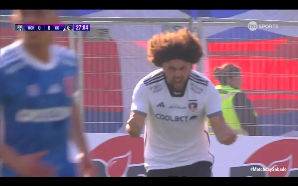 Tras lograr despejar el balón, el defensa de Colo Colo celebró la jugada como si se tratara de un verdadero gol. Algo que se está volviendo típico en el Peluca, que ya había celebrado un par de laterales.