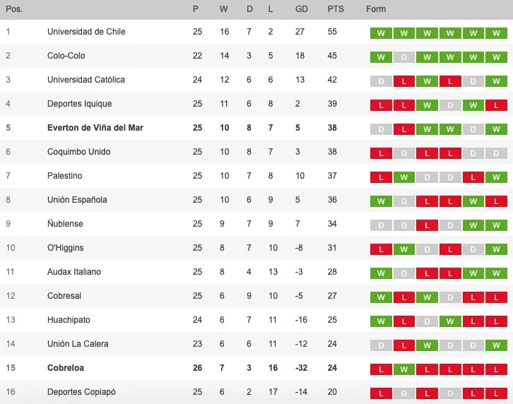 ¿Cómo van Everton y Cobreloa en la tabla de posiciones?