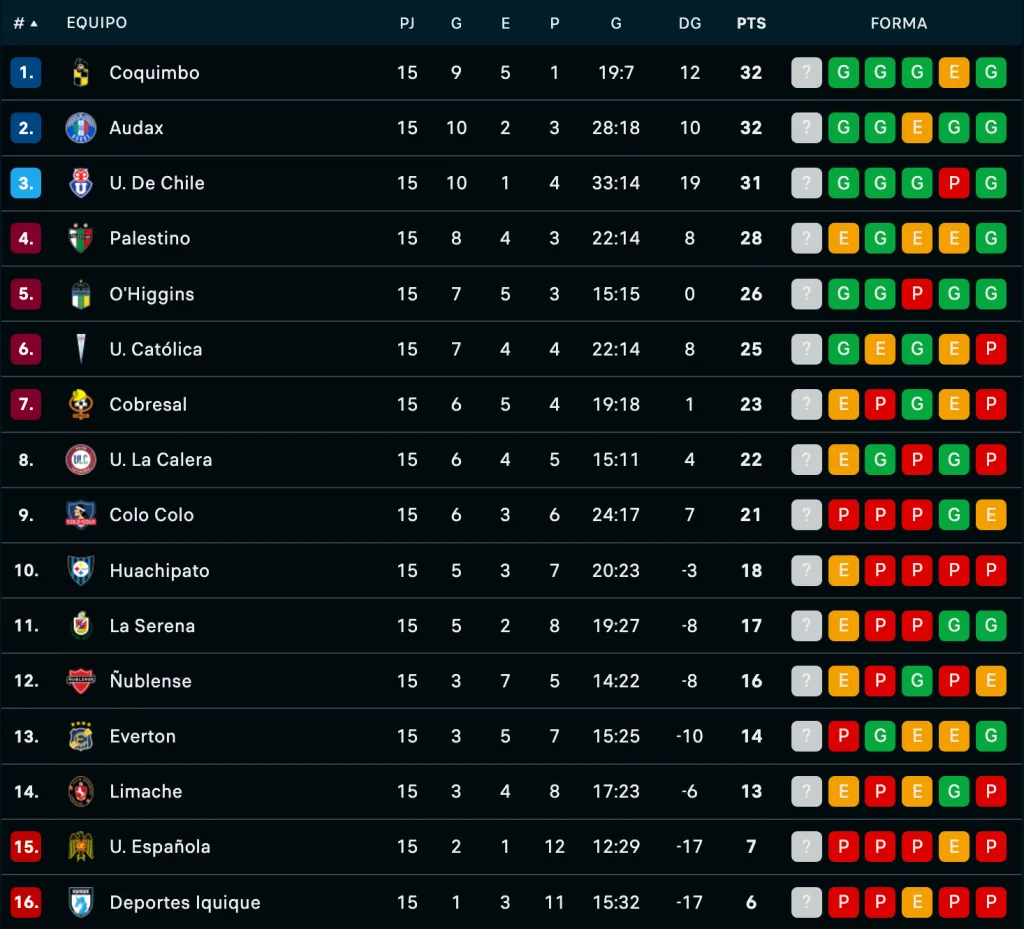 ¿Cómo así? Vamos por partes. Tras el término de la primera rueda, los azules quedaron en el tercer puesto con 31 puntos, a uno de los líderes Audax Italiano y Coquimbo Unido; mientras que los cruzados están sextos con 25, a siete de la cima.