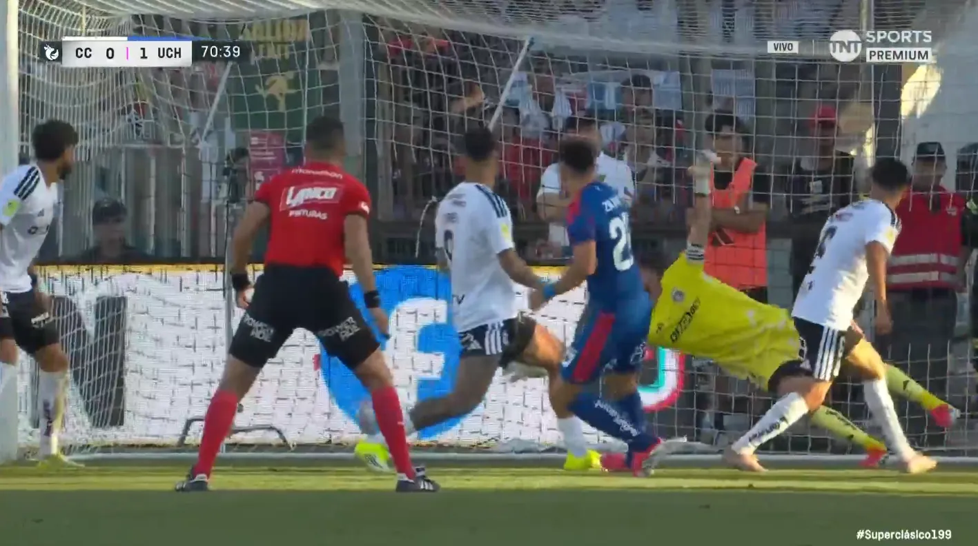 Claro que la jugada de gol vino desde un tiro libre servido por Marcelo Morales. El lateral izquierdo mandó un centro al área, Juan Martín Lucero pivoteó y le quedó a Matías Zaldivia, que la mandó al fondo de las redes (70′). Era el 1-0 a favor de la visita.