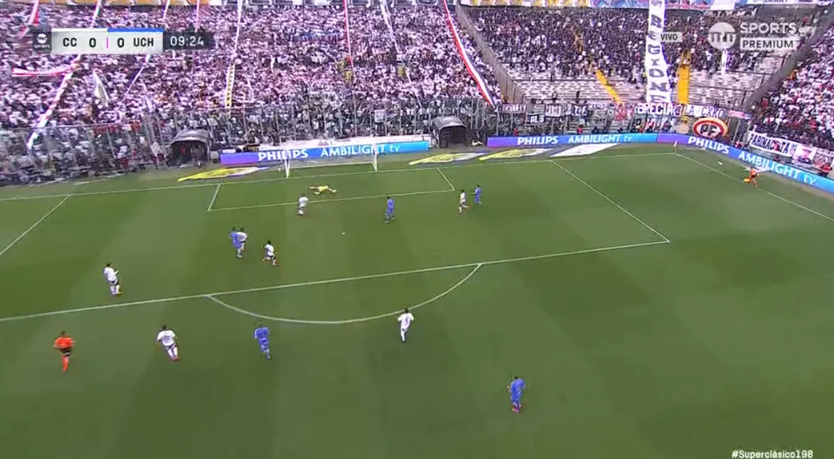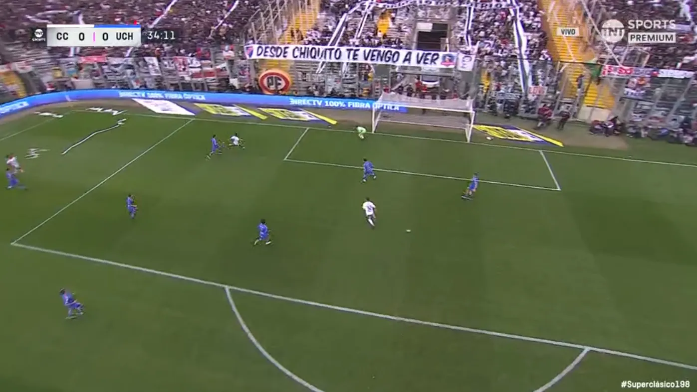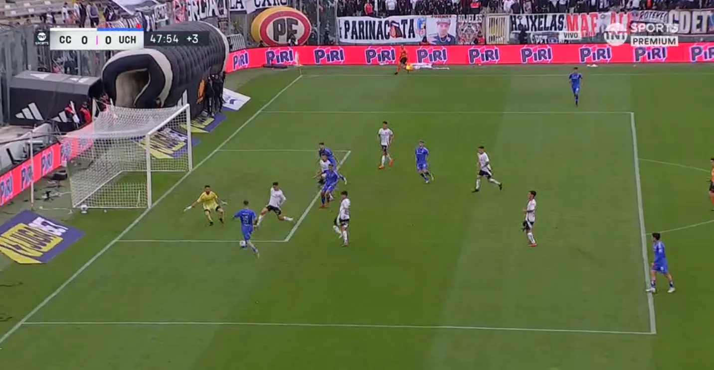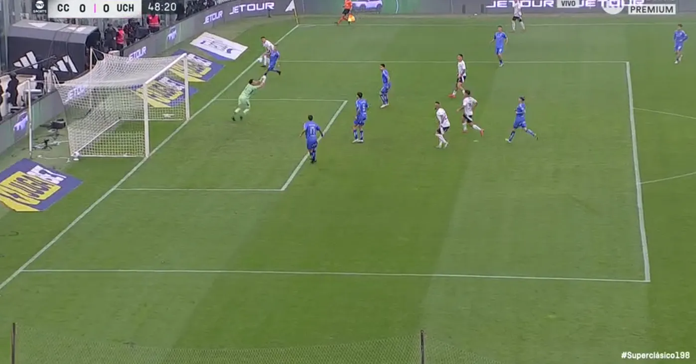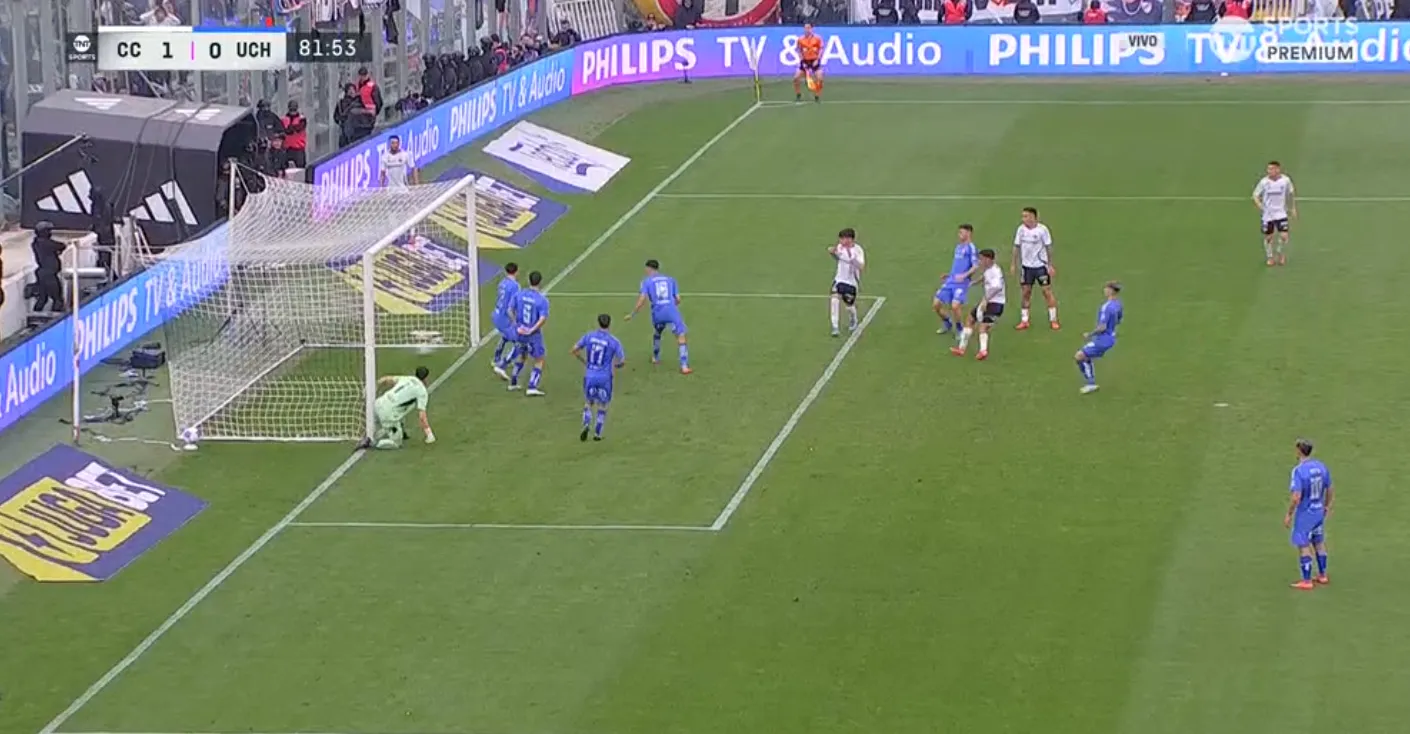 Fue el palo el que salvó en repetidas ocasiones a la Universidad de Chile. Primero, con Vicente Pizarro estrellándo la pelota con todo en el poste a los 53′ y, luego, tras un tapadón de Toselli, Javier Correa repitió esa fórmula a los 71′.