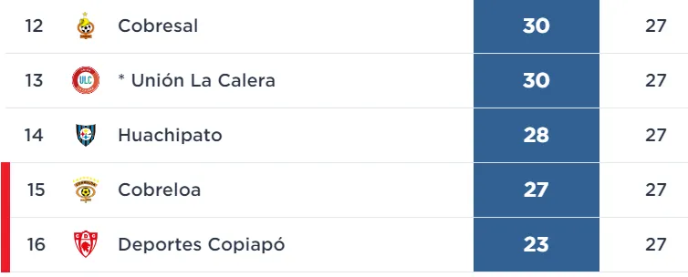 Por su parte, La Calera se mantiene 13° con 30 positivos, en pelea por mantener la categoría y no caer a la zona de descenso a Primera B.