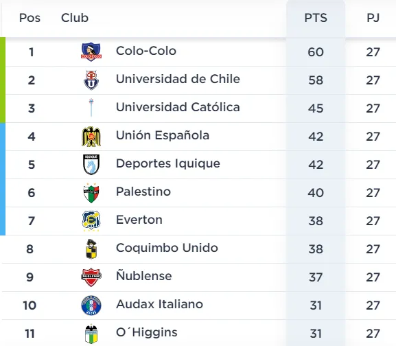 El gol de Marcos Bolados contra La Calera significa que Colo Colo alcanza 60 puntos, versus las 58 unidades de Universidad de Chile… aunque la lucha por el título aún no está cerrada, en una definición que se anticipa vibrante.