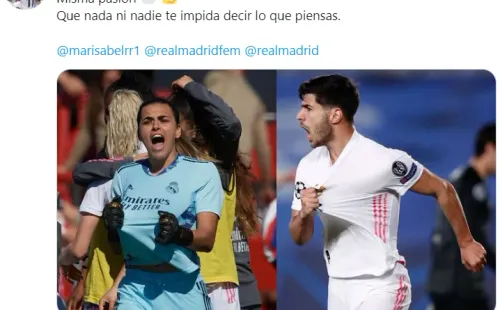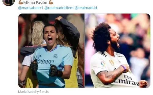 Es por esto que los y las hinchas merengues estaban felices con el triunfo.María Isabel Rodríguez, más conocida comoMisa, portera del Real Madrid, celebró la victoria del club en sus redes sociales, con una imagensuya y otra de Marco Asensio agarrando el escudo de la camiseta, con la frase “la misma pasión“.