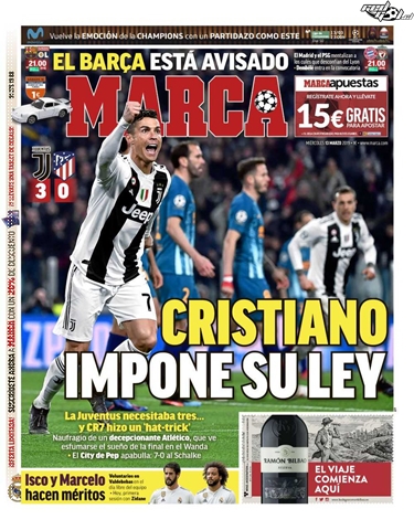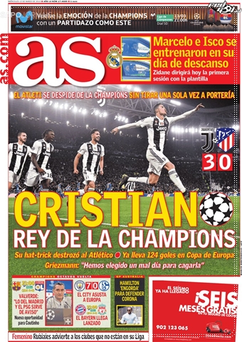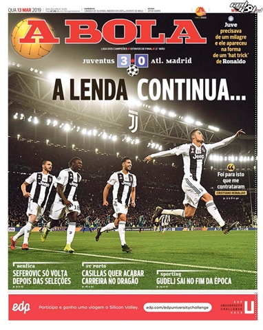 “Héroe con capa”, “Cristiano impone su ley”, “Marciano”, “Monstruoso”, “Rey de la Champions” y “La leyenda continúa” fueron solo algunos de los titulares que encabezó Cristiano Ronaldo en la prensa europea.