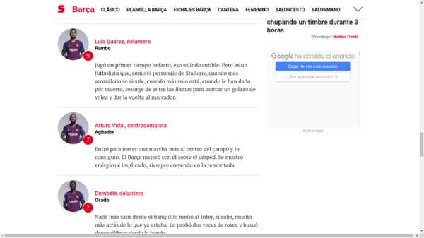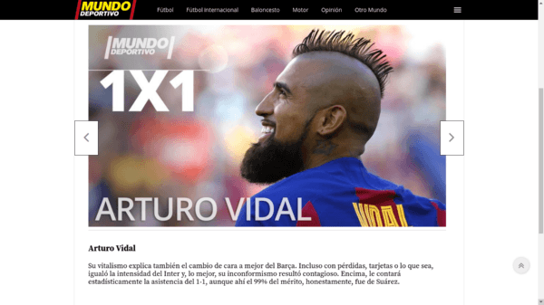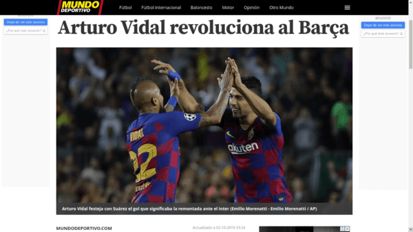 Por su parte, Mundo Deportivo destacó que “la entrada de Arturo Vidal en la segunda mitad resultó decisiva para que el Barça lograra la remontada, pese a que los dos goles los anotó Luis Suárez”.