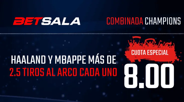 También puedes aprovechar la combinada de Champions League pensando en los partidos de fase de grupos: Si crees que Haaland y Mbappé tendrán más 2,5 tiros al arco cada uno, paga 8,00 veces lo que juegues junto a la Sala de los Campeones.