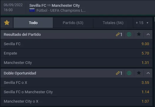 El favorito para Betsala, pensando en este partido de la UEFA Champions League, es Manchester City, que paga 1,31 veces lo que juegues, por sobre los 9,00 que paga el Sevilla, si crees que los locales serán los vencedores en este encuentro. Ahora, si te la juegas por el empate, paga 5,70 veces lo que apuestes junto a la Sala de los Campeones.