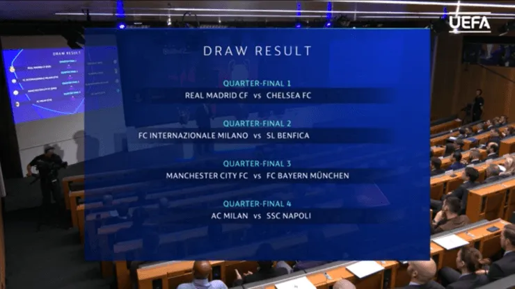 Los bolilleros arrojaron tremendos emparejamientos: Manchester City-Bayern Múnich, con la esperada revancha de Pep Guardiola ante su ex equipo, Milan-Napoli e Inter de Milán-Benfica. Pero el morbo está asegurado para más adelante, ya que en semifinales se pueden encontrar verdaderos clásicos del fútbol europeo.