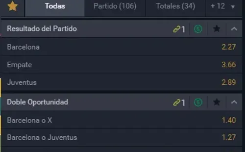 Si te la juegas por Barcelona y Juventus en la UEFA Champions League, en el imperdible duelo de Lionel Messi ante Cristiano Ronaldo, el favorito para ganar con Betsala es Barcelona, que paga 2.27 veces lo que juegues, por sobre los 2.89 que paga Juventus si ellos se quedan con el triunfo. Ahora, si termina en empate, paga 3.66 veces lo que apuestes.