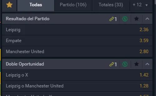 Si te la quieres jugar en el duelo de Leipzig ante Manchester United en la UEFA Champions League, el favorito para ganar junto a Betsala es el RB Leipzig, que paga 2.36 veces lo que juegues por sobre los 2.80 que paga Manchester United si piensas que ellos vencerán. Ahora, el empate paga 3.59 veces lo que apuestes.
