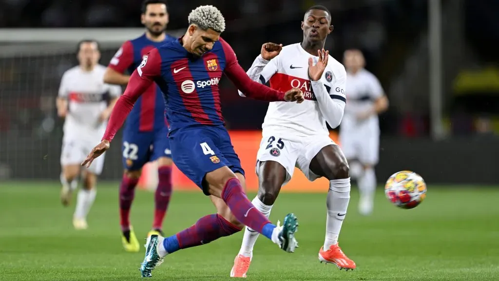 Pero en los 28’, Ronald Araujo bajó a Bradley Barcola en la frontera del área y se fue expulsado. Si el Barcelona reclamaba la roja pese a que el francés se metía cara a cara contra Marc-André ter Stegen, en el PSG alegaban que la jugada representaba penal, aunque el árbitro cobró fuera del área.