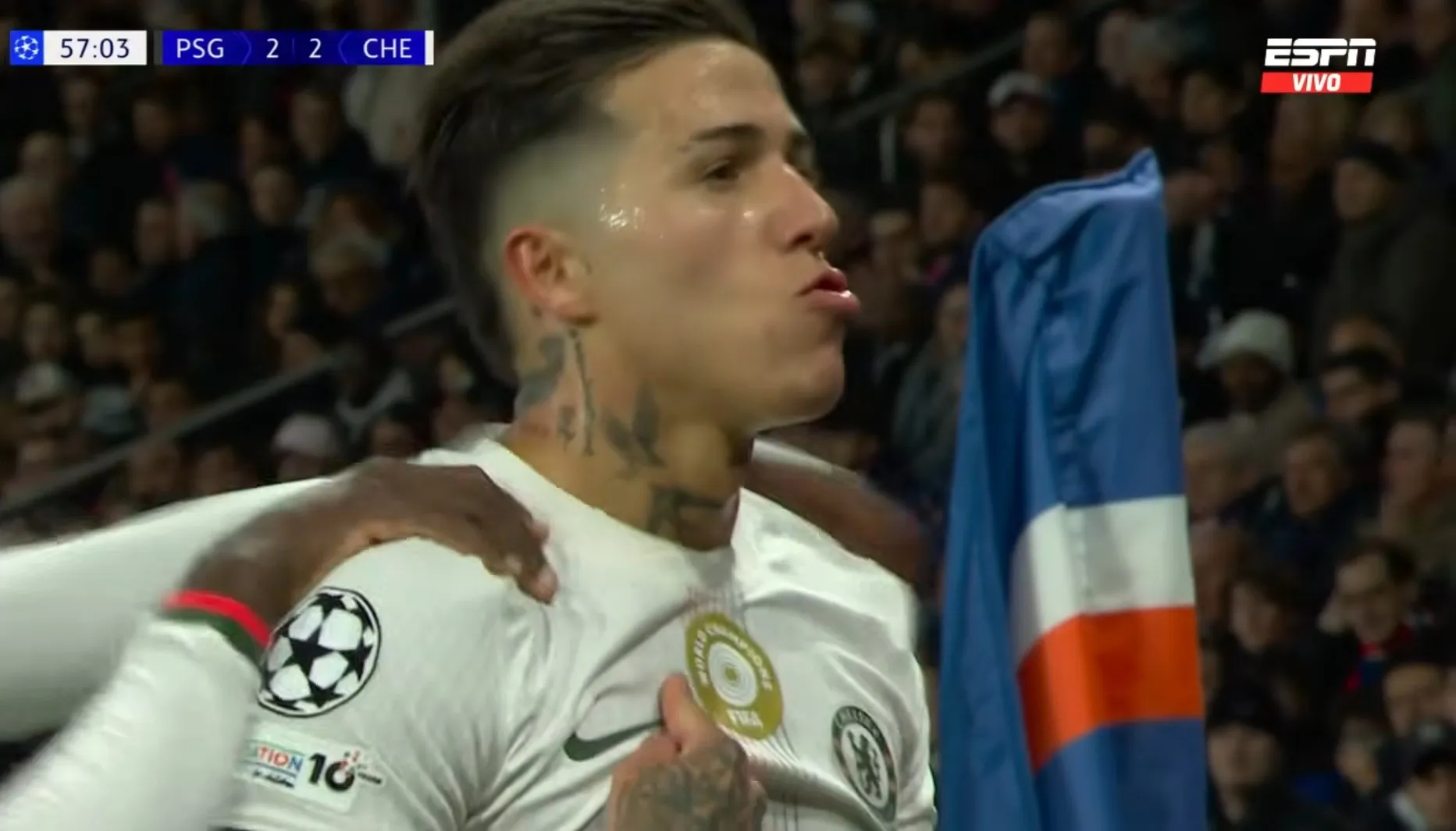 Por esto mismo es que Enzo Fernández, jugador del Chelsea, aprovechó su anotación en el duelo por Champions League en París ante el PSG para ir a gritarle el gol, que significó el 2-2 parcial, al público local.