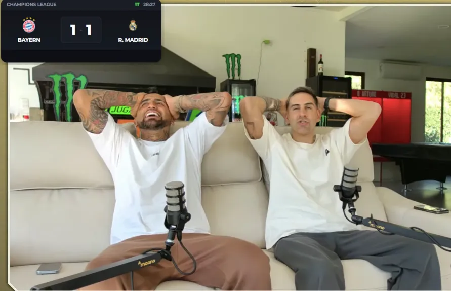 Lo que sufrió Arturo Vidal que reaccionó en vivo al partido de su ex equipo. “¡Noooo! Que cagaita”, lanzó de entrada al ver el error de quien fuese su compañero en el Bayern.