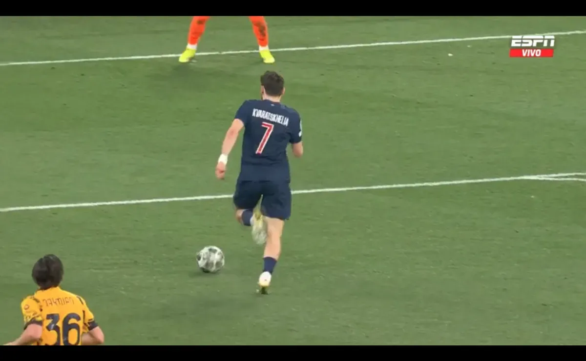 Faltaba que anotara uno de los grandes jugadores del PSG. Khvicha Kvaratskhelia se fue solo en un contraataque y definió como sabe para poner el cuarto tanto del PSG (73′).