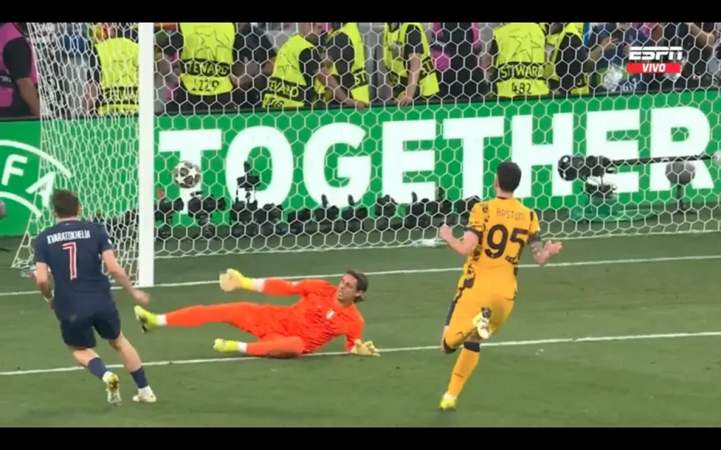 Sí celebró Doué. Recibió un cambio desde la izquierda, controló y disparó. El balón rebotó en Dimarco y se metió en las redes de Sommer (20′).