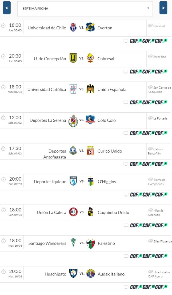 La ANFP liberó la programación de la séptima fecha que se jugará la próxima semana y que no tendrá actividad el domingo 8 de marzo debido a la conmemoración del Día Internacional de la Mujer.