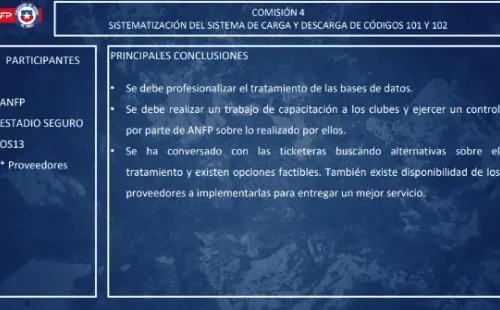Algunas de las diapositivas presentadas por la ANFP ante el Congreso con la idea de implementar el reconocimiento facial en los estadios, entre otras medidas de seguridad para combatir la violencia.