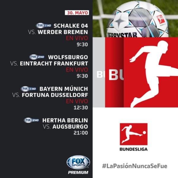 Pero la acción empezará desde temprano con la transmisión exclusiva de la Bundesliga por Fox Sports Premium, con los duelos de Schalke 04 vs Werder Bremen y Wolfsburgo vs Frankfurt para empezar la jornada.
