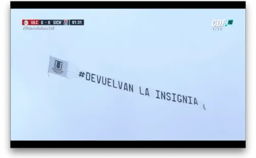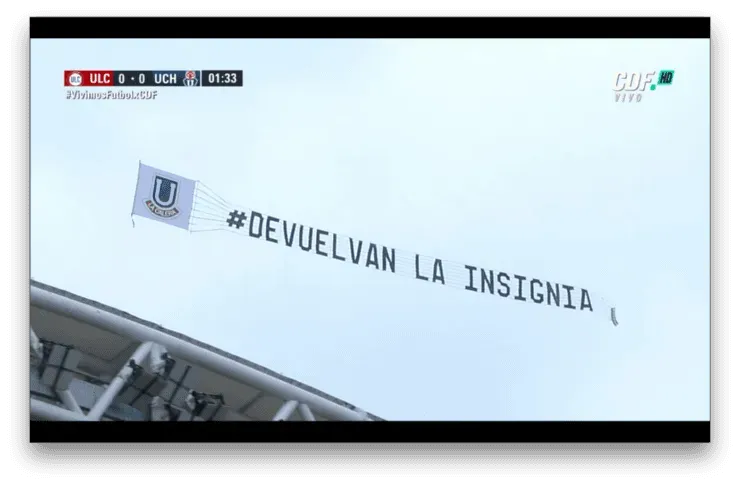 El transporte aéreo pasó con el texto: “Devuelvan la insignia”, pidiendo la restitución de la antigua escudo del club, el cual fue cambiado al inicio de este año.