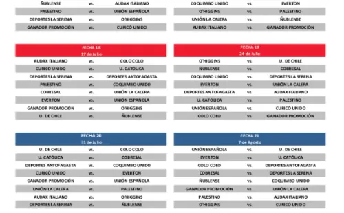 La segunda rueda, en tanto, comenzará el fin de semana del domingo 3 de julio. Hay un parate en agosto, otro por Fiestas Patrias, uno nuevo en octubre y el final está programado para el domingo 6 de noviembre, pensando que es año de Mundial con atípica fecha del 21 de noviembre al 18 de diciembre.