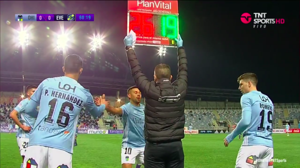 El Tucu inició el encuentro desde el banquillo de suplentes y en el entretiempo fue pedido a gritos por parte de la afición que se dio cita en el recinto rancagüinohasta que al minuto 60 tuvo la oportunidad por parte del entrenador Miguel Ramírez, quien decidió ponerlo en el lugar de Ramón Fernández.