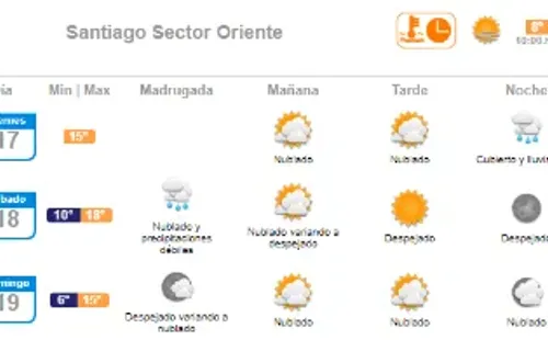 La Dirección Meteorológica de Chile anuncia cielos cubiertos y lluvia débil para la antesala del Superclásico del fútbol chileno, el encuentro que enfrentará a Universidad de Chile y Colo Colo este sábado a partir del mediodía.