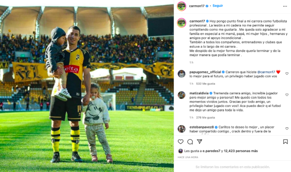 “Carrerón que hiciste Carmona“, señaló de entrada el trasandino.”Lo mejor para el futuro, un privilegio haber jugado con vos“, agregó emocionado.