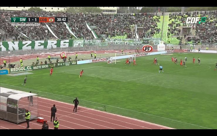 Bernardo Cerezo puso el 2-1 a favor de Santiago Wanderers ante Cobreloa y le está dando el triunfo parcial en el primer tiempo.