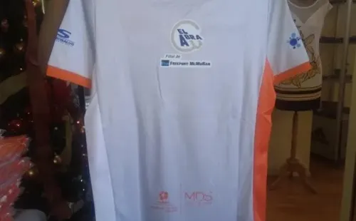 Por su parte, la segunda camiseta es blanca como fondo con naranjo en el cuello, mangas y los costados del torso.