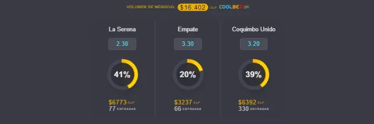 Junto al OSO de Coolbet puedes vivir, desde el primer minuto, todos los detalles del Clásico de la Región de Coquimbo. El favorito para ganar este encuentro es Deportes La Serena, que paga 2.30 veces lo que juegues, por sobre los 3.20 de Coquimbo Unido, si crees que ellos se quedan con el clásico. Ahora, el empate entre ambos paga 3.30 veces lo que apuestes.