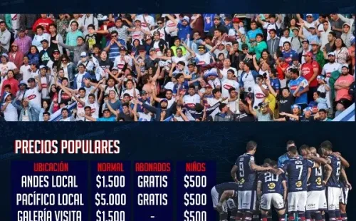Este lunes los Potros anunciaron la venta de entradas para el compromiso ante los viñamarinos, pero con una diferencia especial: los boletos tendrán precios populares para intentar llenar el estadio Santa Laura.