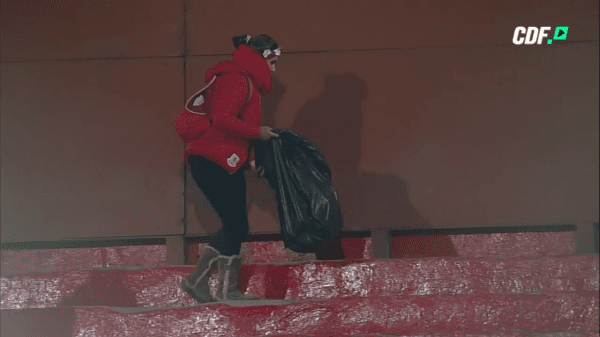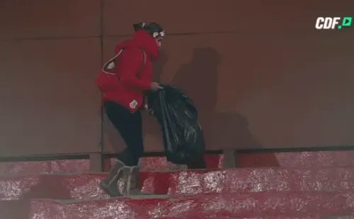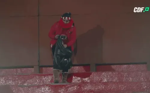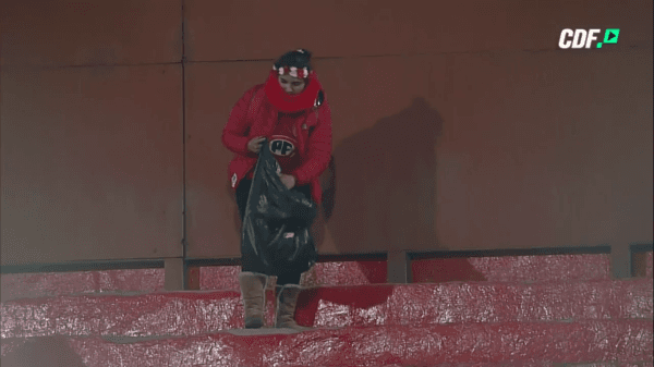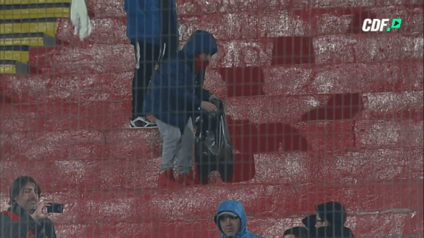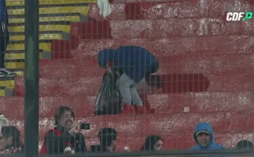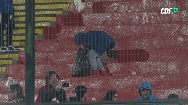 Tras el pitazo final, el CDF captó a los forofos de La Calera con bolsas de basura limpiando el sector que utilizaron en el reducto de Independencia. Esta no es la primera vez que se ve a los hinchas cementeros en la tarea que ya realizaron antes contra Chapecoense.