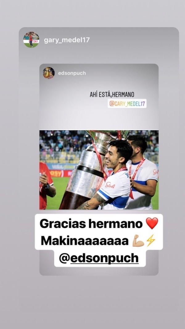 Finalmente Puchfue titular en la obtención de la Supercopa en Viña del Mar y a través Instagramel delantero cumplió la promesa de ganar el trofeo a GaryMedel. “Ahí está hermano” junto a una foto de la Copa y un beso de Puch. El Pitbullle respondió del mismo modo en Instagram y con “gracias hermano, maquina”.