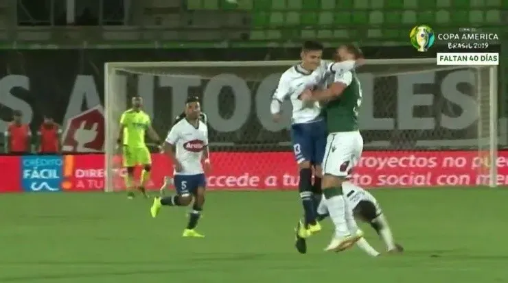 Y la tercera trifulca dejó dos expulsados en el encuentro que enfrentó a Deportes Santa Cruz con La Serena. Francisco Arenas le ganó la posición a Pablo Vranjicán en el costado derecho, pero el argentino no se amilanó y soltó un par de golpes, para luego bajarlo con un gancho al pómulo cuando Arenas tiraba una patada baja.