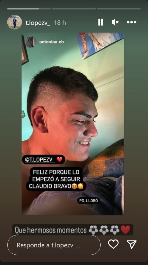 Y este martes recibió una inesperada sorpresa. El capitán de la Selección Chilena lo comenzó a seguir en Instagram y además le envió un emotivo mensaje por la red social. En su último posteo, Bravo le envió un mensaje diciendo que seguramente el arquero de Chimbarongo nunca olvidará.