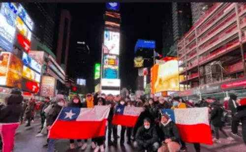 Por su parte, el volante de Universidad de Chile en medio de sus vacaciones, disfrutó el triunfo del presidente electo junto a un grupo de compatriotas que alzaron sus banderas chilenas desde Time Square en Nueva York, Estados Unidos. Algo parecido hizo Isaac Díaz, pero desde plena Alameda junto a su pareja.